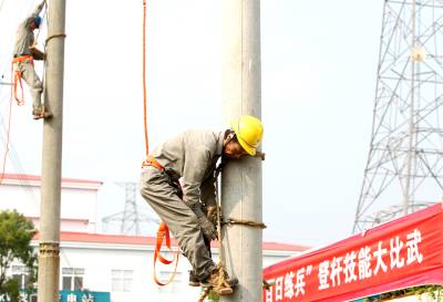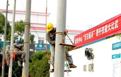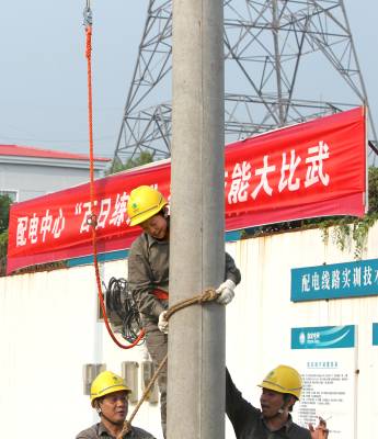 9月19日,宜昌供电公司配电中心举办了首届职工”百日大练兵,技能比武”竞赛,通过比赛让更多职工学习了解如何”登杆”,了解电力最基础的工作。如图:职工比武的情况。