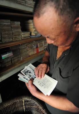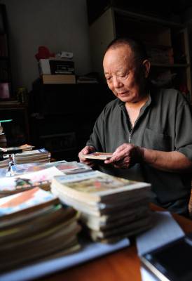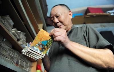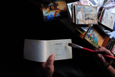 八旬老人收藏连环画近万册19日,湖北省潜江市农业局农科所退休干部杨金波在整理收藏的连环画,将破损的连环画进行修复。年近八旬的杨金波自上世纪1996年开始收藏连环画。10多年来,收藏了有《三国演义》、《水浒传》、《西游记》、《红楼梦》中国四大名著全套,抗战题材的连环画1000余册,红色革命题材近1000册以及戏曲、军事、文革等题材的连环画近万册。碰到脏乱破损或者无封底封面的连环画,杨老师摸索出了一套的修复办法,利用砂子打磨、84消毒液清除字迹和污垢,电脑复原等办法使连环画修旧如新。小小连环画,蕴藏着大乐趣,杨金波老人一有空就到书店、地摊、旧书市场去淘宝。在收藏中体验乐趣,丰富晚年生活。本报视界网吴燕军摄