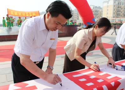 9月20日是《公民道德建设实施纲要》印发10周年、第八个”公民道德”宣传日。当日上午,为了深入贯彻落实《公民道德建设实施纲要》,进一步发扬奉献精神,优化发展环境、倡导时代新风,孝昌在该县花园广场举行”发扬奉献精神、优化发展环境”志愿活动启动仪式。孝感市委宣传部副部长刘敏,和该县四大家全体领导,及来自该县县直及乡镇的5000余名志愿者一起参加了启动仪式。昌5000余名志愿者在写有”发扬奉献精神、优化发展环境”的横幅上,郑重地签上了自己的名字后,自发清理了活动场地上的垃圾。宋俊初刘明贤摄