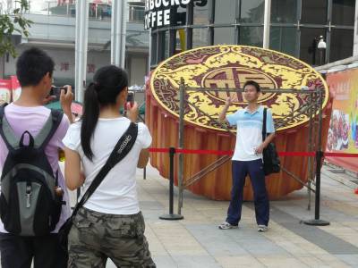 > 武汉光谷祈福大月饼吸引人