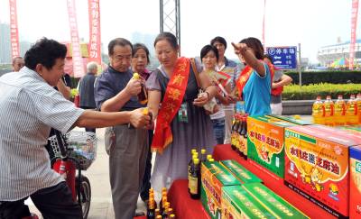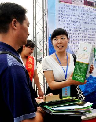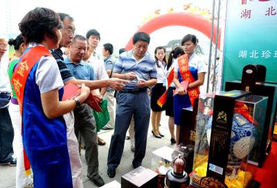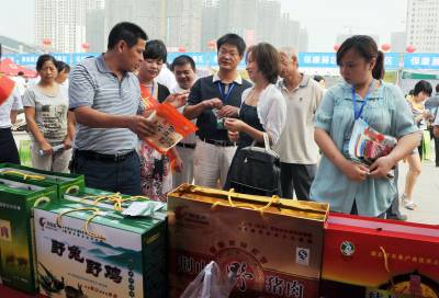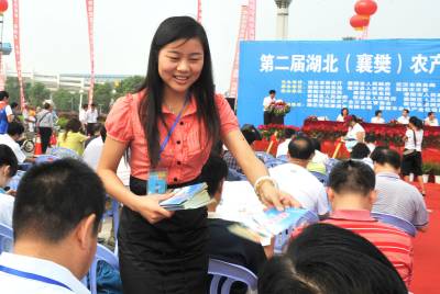 2010年9月20日,武汉八家商贸企业的老总们正在挑选自己需要的农产品。当日,由湖北省商务厅、襄樊市政府和武汉商务局联合举办的第二届湖北(襄樊)农产品进超市活动在襄樊诸葛亮文化广场隆重开幕。来自武汉得八家商贸企业的老总和襄樊的大超市与当地各县、市的农产品经营者面对面洽谈供需合同。使城里受欢迎的农产品走进大超市。