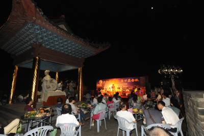 湖北襄樊在千年古城墙上举办中秋晚会迎中秋