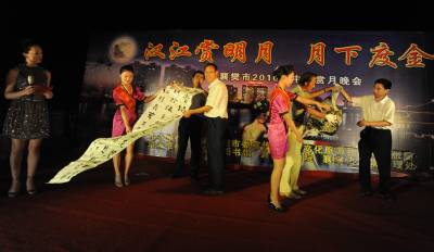 9月20日晚,湖北襄樊在千年古城墙上的夫人城段举办中秋音乐晚会,迎接中秋节的到来。当天,海外侨胞、企业家代表、全国劳动模范、优秀环卫工人、青少年代表和文艺届名人欢聚一堂,共同庆祝中秋佳节的来临。夫人城城为襄阳人为缅怀东晋襄阳守将朱序之母韩夫人所筑。在巍峨雄壮的襄阳城西北角,有一座城外城,雄伟壮观,君临汉水,与襄阳城紧紧相联。城墙高二丈余,周长约十余文,城墙朝北的一方正中嵌有大型石匾,上书”夫人城”三个苍劲有力的大字。当日,襄樊市首次在古城墙上举办了中秋晚会,文艺工作者表演了精彩的文艺节目,书画家向各界友人赠送了书画作品。