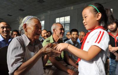 (组图)老少同乐度中秋本报视界网刘波9月21日,建始县高坪镇汇富民族希望小学孩子们抬着月饼来到该镇福利院,给老人们一一分发月饼(图一)、行队礼(图二),伴陪老人(图四),与老人一起打腰鼓(图三),老少同乐,共度中秋。(采访手记:)尊老爱幼是中华民族传统美德。该校把福利院作为学校尊老爱幼教育基地,经常组织学生到福利院开展打扫卫生、文艺演出、慰问、陪伴老人等系列活动,从小培养学生尊老爱幼传统美德,值得提倡。建始新闻中心刘波联系电话13032794298