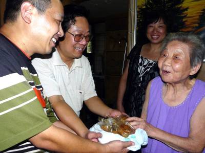 在我国人民的传统佳节中秋节来到之际,湖北省武汉市江汉区北湖街辖区的爱心企业敦煌美食城,几年来坚持把自产精制的绿豆、豆沙、牛肉、果仁等8个品种的月饼,赠送给正街等6个社区的"三无"特残、孤寡空巢老人、特困低保户等弱势群体,使他们愉快过佳节。今年9月21日,该城献爱心,又把180份每袋装8个口味的月饼,送到了街道,由街社区领导送到了他们的家中。