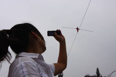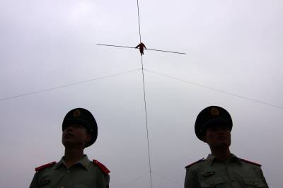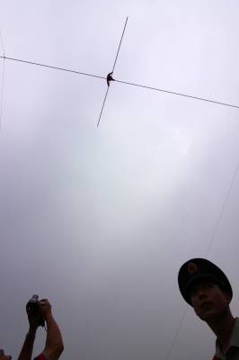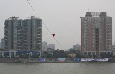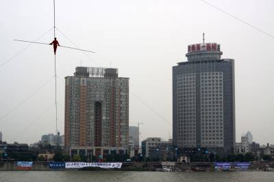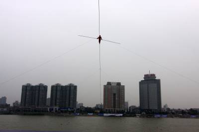 > 湖北襄樊:阿迪力汉江高空走钢丝