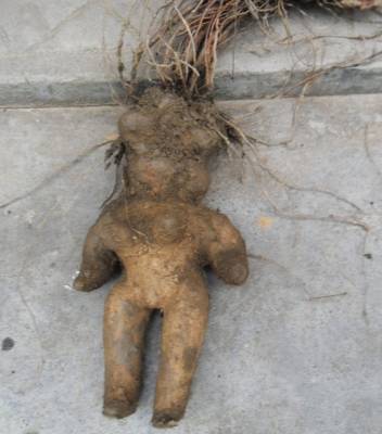 竹山文峰挖出酷似女性人形特大野生何首乌