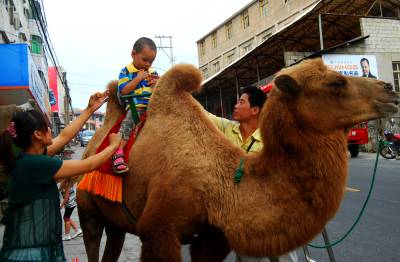 9月21日,一头骆驼在巴东县大支坪镇吸引了众多路人的观看,一些小朋友纷纷与其留影。田植峰彭青山摄