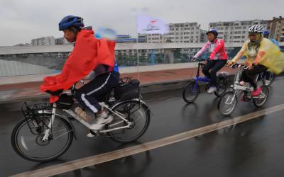世界无车日 我们冒雨骑行