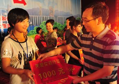9月21日,秭归县计生局为40名女孩每人奖励1000元的关爱女孩行动助学金。自2007年以来,该县建立关爱女孩资金,已累计为160名贫困学生帮扶资金40多万元。与此同时,该县还把聘请了4名考上北大、清华优秀大学生为关爱女孩形象大使,让她们与孩结对,定期回乡进行学习、创业培训,以促进女孩健康成长。