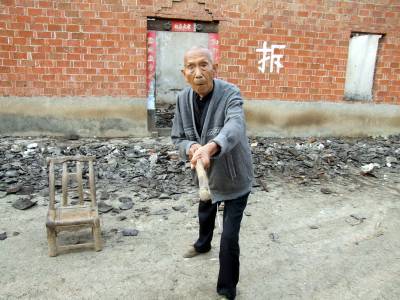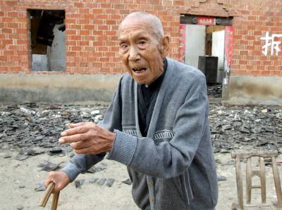 9月22日是八月十五中秋节,这天湖北省郧县谭家湾镇十方院村的1,2,3,4,5,6组计320户1262人确忙着搬家装车和拆房,他们为了支持国家南水北调工程将于9月24日离开家乡搬迁到宜城市邓林农场三分场二中队开始新的生活。当天我们慕名来到谭家湾镇十方院村2组94岁外迁移民牛正坤老人家里看望他老人家,用数码相机记录老人在家乡过最后一个中秋节的过程,老人家的房子是坐北朝南是六十年代因建丹江口大坝而从汉江边后靠重建的砖瓦结构平房,汉江水大时离水边只有2000米,老人有1.75米高的个子,瓜子脸,两个大眼睛己不怎么看清东西了,但耳朵听话还很清楚。为了支持早日搬迁一家4代6人在亲属们的帮助下早己将家当搬到209国道旁装上了大车,一家人住在西侧偏厦的厨房里,穷孙们临时住进了早己废弃的猪舍里。谈起老人参加过台儿庄大战老人来了精神,老人生于1916年,1930年14岁时被国民党抓了壮丁,经过新兵训练被编入国民党张自忠的第33集团军,后参加了由李宗仁指挥的台儿庄大战与日本鬼子进行了一场血战和恶战,打出了中国军人的骨气,让老人一生都感到自豪荣耀。解放战争中老人又加入了中国人民解放军,参加了著各的以少胜多的淮海战役和渡江战役,一直打进南京城。牛正坤老人共在部队当兵20年,头几年在国民党部队打日本鬼子后又参加解放军掉转枪口打起了国民党军,老人的经历十分特殊有些事情己经记不清多少了,1950年老入转业回乡在生产队当保管员,离开部队时老人带回3枚军功章,一枚淮海战役胜利纪念章,一枚渡江战役胜利纪念章和一枚立功奖章,因为搬家己装上车我们己无法看到。谈起战争年代老人仿佛回到了当兵时代精神十足,不时的敬礼并拿起手杖当枪拚起了刺刀,我们给他照张合影相他还不忘敬个军礼,逗的周围的人哈哈大笑,晚上老人一家把桌子搬到门前吃着我送来的月饼赏着明月其乐溶溶,谈起南水北调大移民大搬迁,老人爽快的说:”没啥想不通的坚决支持”。图1为2010年的中秋月郧县移民在家乡看着就是这轮月亮。图2为牛正坤老人讲当年血战台儿庄大战小鬼子,淮海战役和渡江战役时的情景。图3为牛正坤老人讲到高兴处当场用手杖当枪拚起了刺刀的情景。图4为牛正坤老人表演拚刺刀后给大家敬军礼时的情景。图5为牛正坤老人与家人合影时还不忘敬个军礼时的情景。图6为牛正坤老人吃上了我为他送来的月饼时的情景。图7为牛正坤老人一家吃着月饼赏着月亮时的情景。周家山杨文华摄湖北省郧县城管大队电话13872840078邮编442500附件(8个)