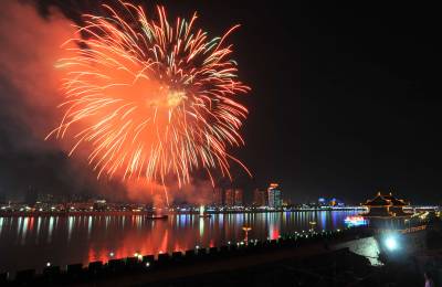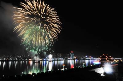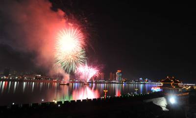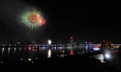 9月22日晚,璀璨焰火点亮了历史文化名城襄樊的夜空。当日20时30分,湖北省襄樊市中秋焰火晚会开始在汉江上燃放焰火,市民在中秋之夜的汉江两岸观赏到美丽的焰火。