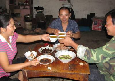 2010年9月22日晚,湖北郧县谭家湾镇十方院村移民正在家乡过最后一个中秋节。该村是南水北调中线工程核心水源区,村里6个组320户1262人将于24日迁往宜城市邓林农场。