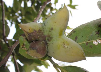 柿子人人都见过,圆圆的如球状,但裂成四瓣,且四瓣均尖头,形状就像一只展翅的抽象蝴蝶,这样的柿子就十分罕见了。9月23日下午,笔者发现孝昌县季店乡陡山村9组村民肖文秀老人大门外的柿树上,就结着这么样一个形状的柿子。前来看望肖文秀老人的季店乡福利院院长李桂仙说,这么多年来她见过的不少的奇形柿子,可这种长得像蝴蝶形状的柿子,还是头一回见到。宋俊初摄