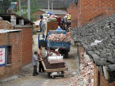 2010年9月23日,湖北郧县谭家湾镇十方院村移民正在该县二中运动场上搬货装车。该村是南水北调中线工程核心水源区,村里6个组320户1241人将于24日迁往宜城市邓林农场。本次搬迁在全省规模最大人数最多。(湖北省十堰市郧县新闻中心曹忠宏摄邮编442500电话13294212877)