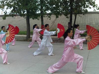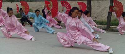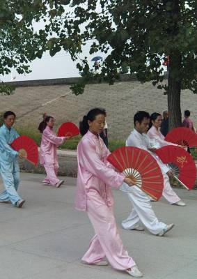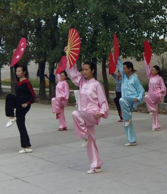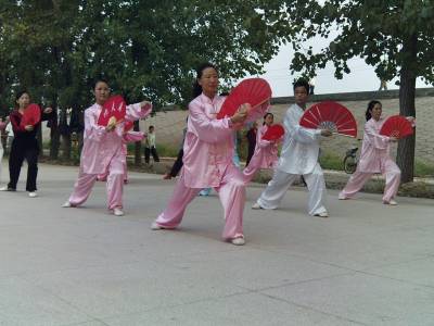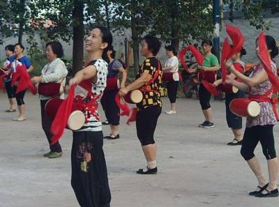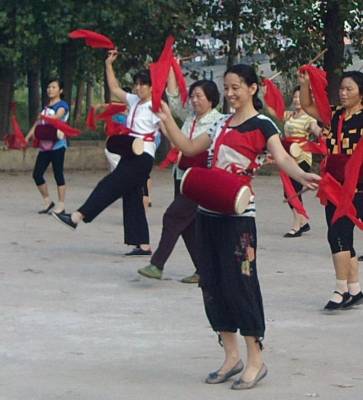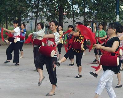 打腰鼓,扭秧歌,练太极,人们其乐融融过中秋。在中秋节三天小长假期间,武穴市广泛开展形式多样的群众性民俗和文化娱乐活动,城乡处处呈现出一派热烈喜庆、健康文明的和谐气氛。(本报视界网郭占军摄)