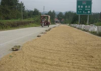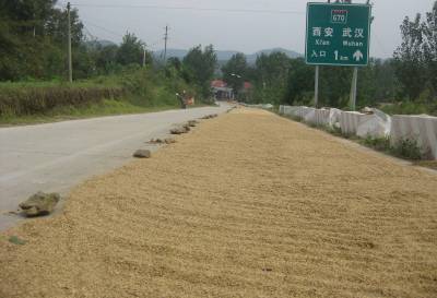 高速入口成禾场高速公路入口本来是车辆驶入高速公路的重要通道,可在福银高速随州市洛阳段,打场晒粮的竟占去了大半江山——(9月23日摄于随州市洛阳镇)署名:涂文(曝光很危险,请编辑为作者安全考虑!)