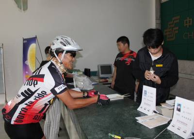 60岁的张何贤先生,在妻子王美玉的陪同下,10天前从北京出发低碳出行,9月24日上午骑单车行驶1200余公里到达孝昌后,来到该县新城区东洪花路邮政营业所,在他们的旅行日记本上加盖孝昌当日的邮戳。张何贤先生告诉记者,他和太太王美玉女士都是台湾人,1990年回大陆东莞定居。张何贤先生的祖籍河北人,这次在单车骑行回深圳途中,他们认真地亲近了祖国的山水,感觉故乡的变化的确很大。宋俊初摄