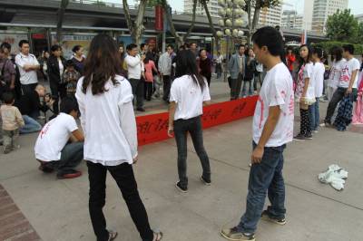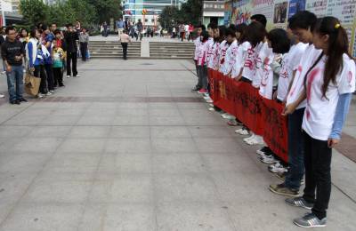 > 武汉:大学生街头”快闪”抗议虐待动物