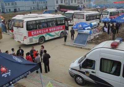 2010年9月24日上午,湖北郧县谭家湾镇十方院村移民顺利抵达宜城。该村是南水北调中线工程核心水源区,当天村里有6个组320户1241人顺利入迁宜城市邓林农场。本次搬迁是郧县第22批次也是规模最大人数最多的一次大搬迁,动用货车75辆,客运车64辆。(湖北省十堰市郧县新闻中心曹忠宏摄邮编442500电话13294212877)