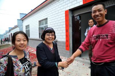 > 著名作家梅洁送郧县移民到新家