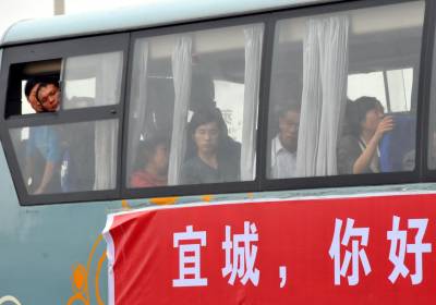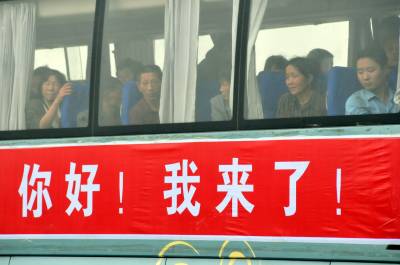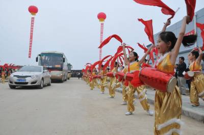 9月24日上午11:20分,湖北省郧县谭家湾镇首批十方院村的1.2.3.4.5.6组320户1262人外迁移民乘座32辆客车和14辆移民自驾车安全抵达宜城市邓林农场三分场二中队安置地,标志着郧县首批一个村人数最多的一次外迁移民。图1为宜城市少儿秧歌队载歌载舞欢迎郧县移民进住移民新村时的情景。图2为贴有宜城你好的移民客运车。图3为郧县移民乘车贴有你好我来了的客车进入移民新村时的情景。周家山杨文华摄湖北省郧县城建监察大队电话13872840078邮编442500