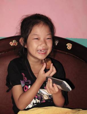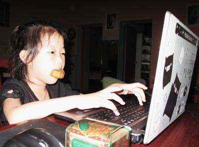 下雨的中秋节无月可赏,心中多少有点遗憾,但天真的小孩子却很开心,她们看电视、玩游戏、吃月饼一样都不能少。