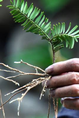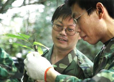9月25日,竹山县堵河源管理局总工程师郑德国(左),在堵河源头的密林中收集植物标本。今年48岁的郑德国,长期冒着生命危险,深入崇山密林,潜心研究植物分类、植物生存环境的保护与发展,积极开展对珍稀濒危植物的拯救与繁育工作,他牵头成功地繁育了凹叶厚朴、红豆杉、巴山榧、穗花杉、云杉、红豆树、罗汉松等七个珍稀濒危树种,其中扦插的50000穗红豆杉,已成苗30000株。在大量的野外工作中,郑德国辨认植物2000多种,收集植物图片标本1000多份,发表业务论文10多篇,为竹山县林业生态保护和珍稀濒危植物种群的恢复和发展,做出了应有贡献。