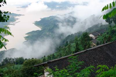 2008年8月17日,雨后放晴,位于三峡大坝上游的湖北宜昌市夷陵区太平溪镇境内雾绕乡村,成为一道美丽的风景。视界网签约摄影师张国荣摄