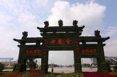 > 湖北襄樊:鲜花版”古隆中牌坊”喜迎国庆佳节