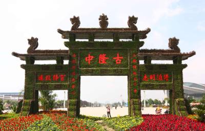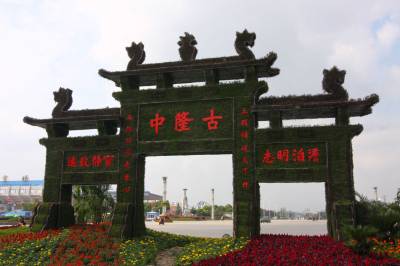 湖北襄樊:鲜花版”古隆中牌坊”喜迎国庆佳节