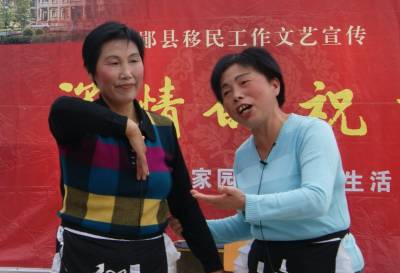 2010年9月27日上午,郧县移民工作文艺宣传队赴该县五峰乡为库区移民慰问演出。因南水北调,五峰乡在10月中旬将有659人外迁,涉及尚家河、黑家湾、前山三个村。本次文艺宣传传达了党和政府对移民群众的关爱,赢得了广大群众对移民工作的支持。(湖北郧县新闻宣传中心曹忠宏谢守军邮编442500电话13294212877)