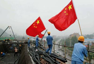 国旗飘扬在工地