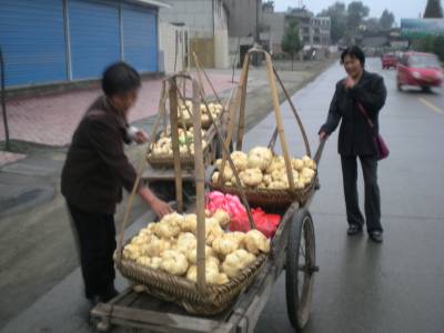 9月28日拍摄于竹溪县城关镇罐沟村。据了解,地瓜在中国南方与北方分别指两种不同植物的块根,北方地区主要指红薯,番薯;而南方部分地区(四川、重庆等地)指豆薯(沙葛),是不同的物种。它们的块茎和块根肥大、脆嫩多汁,富含糖分和蛋白质,各种维生素也较丰富。可生食或炒食。老熟块根中淀粉含量较高,可提制淀粉。并含有膳食纤维、胡萝卜素、维生素A、B、C、E以及钾、铁、铜、硒、钙等10余种微量元素和亚油酸等,营养价值很高。当地农民介绍,该作物种植技术简单,高量高,亩产量可达2000多公斤,市场价每公斤2元,好销售,经济效益好。签约摄影师:罗立政