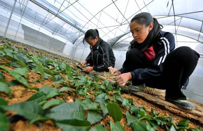 9月27日,宣恩县晓关侗族乡中村坝村,农民在”工厂化”育苗”车间”扦插茶苗。育苗的”工厂化”,一方面增加当地农民的劳务收入,另一方面,该县针对烟叶、茶叶、贡水白柚等特色产业建起的近百个”育苗工厂”,有效解决了农民在发展特色产业过程中的”育苗难”问题。本报视界网宋文摄