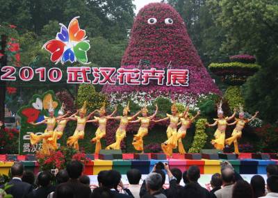昨日上午,2010年武汉花卉展在汉口解放公园拉开帷幕。市民们冒着微凉的细雨前来观展,兴奋之情溢于言表(图一)。开幕式上,异国风情的舞蹈吸引了观众的眼球(图二)。200多万盆各色鲜花,38组立体花坛景观令观者目不暇接,纷纷掏出相机定格一个个美妙的瞬间(图三)。张垠摄武汉市江汉区园林局430022