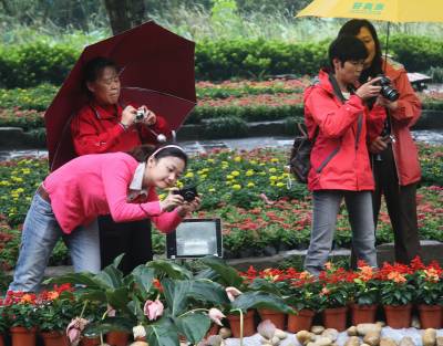 > 冷雨阻挡不住赏花热