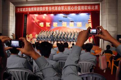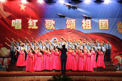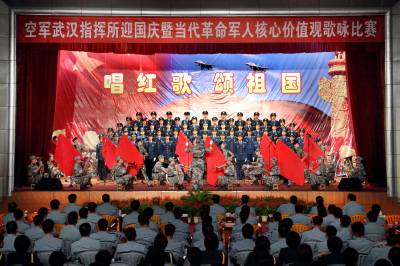 颂歌献祖国9月27日,广空某指挥所”唱红歌、颂祖国”歌咏比赛现场欢声雷动,掌声不断,该部近千名官兵及干休所老干部齐聚一堂,用歌声为祖国祝福,用歌声展军人风采。《忠诚于党》、《神圣使命歌》、《我的祖国》等一首首歌曲唱出了空军将士的万丈豪情,表达了空军官兵浓浓的爱国情怀。穆琳刘志云摄联系人:刘志云通联:武汉市武昌区卓刀泉特一号95028部队宣保处邮编:430079电话:0781—51425(办)手机:18627116990