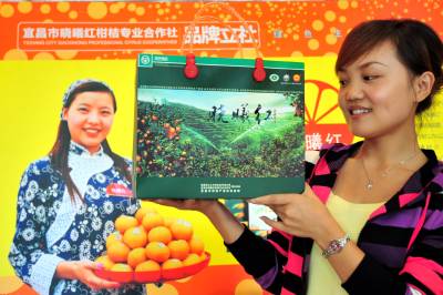 2010年9月28日,湖北省宜昌市正式建立”宜昌蜜橘”销售质量追溯体系,全市柑橘包装销售推广将使用宜昌柑橘产业协会统一印制的”箱贴”,超市销售使用”果贴”,使用量各达1500万枚。这些”箱贴”、”果贴”标明了柑橘果品的产地,印有联系地址和电话,一旦出现质量问题,消费者可根据”箱贴”和”果贴”进行溯源,该市夷陵区晓曦红柑橘专业合作社等17家龙头企业率先使用”箱贴”和”果贴”。本报视界网张国荣摄
