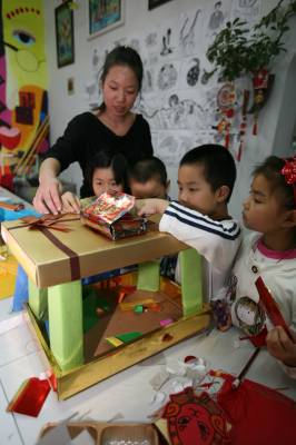 9月28日,湖北省襄樊市阳光未来美术学校开展手工创作比赛活动,学生们找来家中空月饼盒等材料,精心设计制作三国人物、竹简、玩具、挂饰等漂亮的手工艺品,让月饼盒实现”72变”,体验废旧物品通过创意给生活带来的乐趣,从中养成环保低碳的生活方式。
