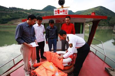 竹山县开展节前水上安全检查9月28日,竹山县海事局工作人员在堵河文峰乡东钦渡口检查客船救生设备完好程度。连日来,竹山县海事局对境内的21座渡口,32艘渡船、12艘旅游船开展”地毯式”拉网大检查。检查的重点为各项应急措施到位情况以及船舶消防救生设备的维护保养情况,对检查结果不合格的船舶、设备,海事部门将责令整改,严禁船舶”带病”航行,为节日安全提供有效保障。(本报视界网章磊摄)地址:竹山县交通局章磊电话:15972574118