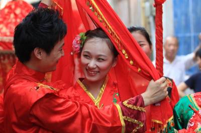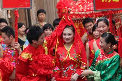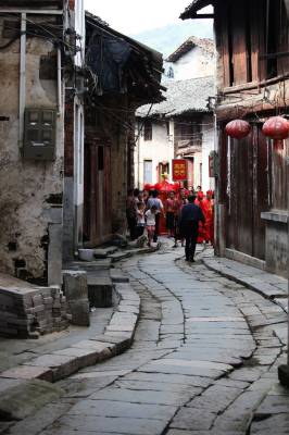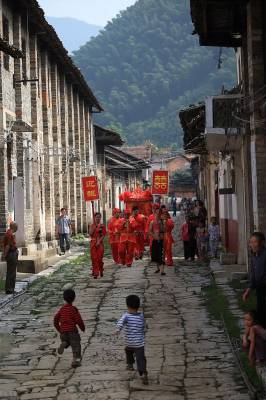 羊楼洞古镇位于湖北省赤壁市西南湘鄂交界处,古镇自唐太和年间皇诏普种山茶起,就开始培植、加工茶叶,是”松峰茶”原产地,素有”砖茶之乡”的美称。明嘉靖年初,古镇的制茶业已相当发达,茶庄有200余家。到清朝道光年间,山西、广东等地茶商进镇开设茶庄,”羊楼洞茶”远销海内外,曾被誉为”中国大茶市”。鸦片战争后,美、日、俄、德等过闻风而来占地建厂,极盛时有”小汉口”之称。沿袭800多年的娶亲风俗,至今依然可以寻找到它的痕迹。花轿、新郎新娘、媒婆、民乐庞大的迎亲队伍应有尽有,时而给古镇带来喜庆的景象。(汪孝文摄)