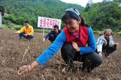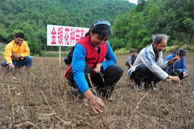 引凤回乡办大基地9月29日,建始县龙坪乡大树湾村村民正在该乡打工妹周艳芳投资30万元的金银花苗圃基地扦插枝条,作为全州药业大乡,今年该乡引回在深圳创业的女青年周艳芳引领百姓兴药业。据悉,目前,周艳芳已投资30万元从河南购回百万株金银枝条建起苗圃基地。并将于今冬明春投资200万元,建起2000亩基地和加工厂,把这一新型药业产业办成百姓致富产业。本报视界网刘波建始县新闻中心刘波联系电话13032794298