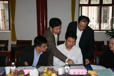9月28日上午,国家教育部、国务院纠风办、财政部等六部委领导到钟祥检查改制学校规范工作。图为检查组成员在钟祥市兰台中学审查该校账目等资料。钟祥市教育局办公室王松