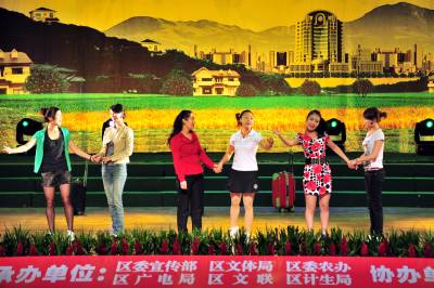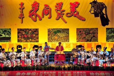 2010年9月29日,湖北省宜昌市夷陵区举办以”美自民间来”为主题的第四届农村文艺调演暨民间艺术大赛,各乡镇选送的26个具有浓郁民间特色和深厚文化底蕴的乡土文艺作品精彩亮相,为庆祝新中国成立61周年营造了浓厚的喜庆氛围。本报视界网张国荣摄