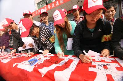 昨(29)日,荆门市东宝区泉口街道举办了”迎省运、讲文明、树新风”礼仪知识讲座和社区志愿者集体宣誓签名活动。社区志愿者们表示要做一位讲文明,树新风的优秀志愿者,以更好的志愿精神去服务市民,以实际行动迎接省运会。(本报视界网宁新生摄)