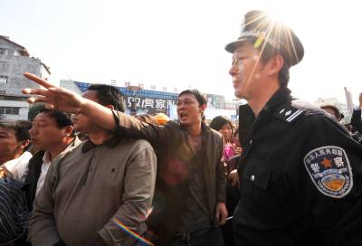 2010年9月29日下午,两名警察正将杀害李豪的犯罪嫌疑人刘平押上审判台。当日,湖北省南漳县在该县车站广场召开公处大会,对杀害18路公交司机李豪的犯罪嫌疑人刘平依法逮捕。9月25日10时54分,南漳18路公交车行至水镜路3号站台停车上客时,司机李豪和妻子伍宗娥发现3名惯偷故意挤车,伺机行窃。为了乘客利益不受侵害,伍宗娥站出来几次大声警告:”莫到这儿搞!”并以此提醒站台和车上的乘客。3名惯偷见”好事”被搅,便与李豪夫妇发生争吵。李豪在下车制止的过程中,被犯罪嫌疑人刘平连刺两刀,经抢救无效身亡。案发后,该县警方抽调40余名民警展开侦破工作,在全城布控搜捕犯罪嫌疑人。经电子监控录像辨认,群众反映,民警迅速锁定其中动刀杀害李豪者系24岁的城关镇人刘平。在警方强大的攻势下,刘平投案自首。