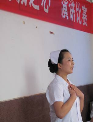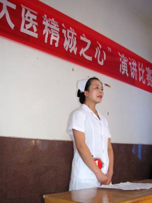 9月29日,十堰市郧县中医院职工孙传慧正在参加演讲赛。为深入推进”创先争优”活动的开展,该院举办了以”大医精诚之心”为主题的演讲比赛。此次比赛抒发了中医院职工爱国、爱党、爱医院、爱病人的真情实感,展现新时期白衣天使的良好职业风貌。