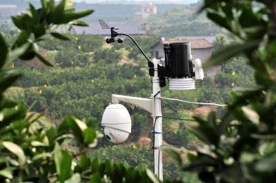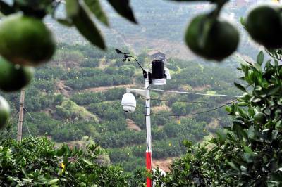 湖北省宜昌市夷陵区积极推行橘园生产新技术,该区特产部门根据现代果园信息技术于2010年9月初建成了柑橘果园信息数据自动化采集器,由晓溪红柑橘专业合作社在柑橘示范场安装试用。 该采集器可实时收集橘园内风速、风向、光照、蒸发量、降雨量、雨强、气压、空气温度、空气相对湿度、紫外辐射、太阳辐射、最大日射、土壤60cm土层温度、露点、风寒等气象因子和土壤养分数据,并可自动生成NOAA气象报告和趋势分析,配合电脑操作软件实现网络远程数据传输和网络实时气象状况监测,为橘树生长保驾护航,为柑农进行相关农事活动、开展农业生产提供信息指导,便于及时应对紧急灾害天气。本报视界网张国荣摄