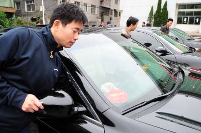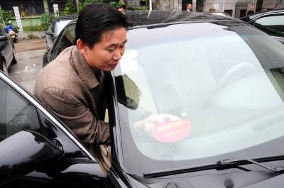 9月29日,黄梅县举行公务用车贴标仪式,首批来自县四大家的38台领导”坐骑”被公开”公用身份”。据悉,该县所有行政事业单位及其下属二级单位的227台无公务标识的车辆均将统一贴上”黄梅县公务车”字样,公开举报电话,接受社会监督,禁止公车私用等违规行为发生。(王政摄)